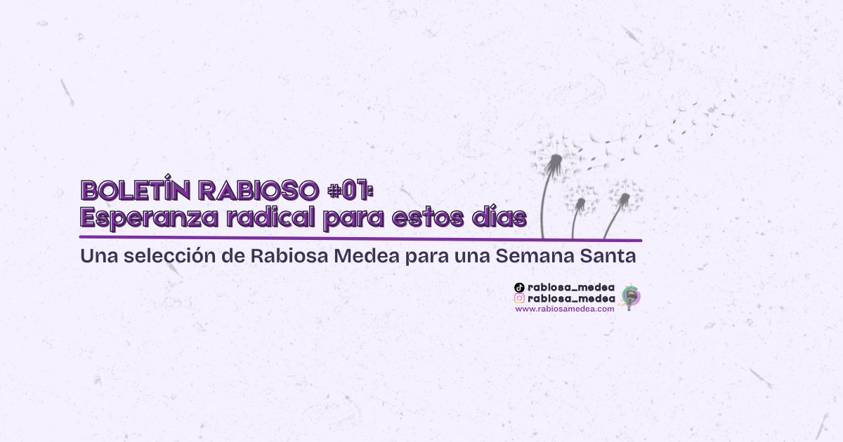 Esta Semana Santa quise preparar una edición distinta de Rabiosa Medea y aprovechar para lanzar el Boletín Rabioso: un newsletter mensual. En este Rabioso les comparto una ruta breve para ponerse al día con algunos textos y episodios que siguen acompañándonos, ayudándonos a pensar y a nombrar lo que vivimos.